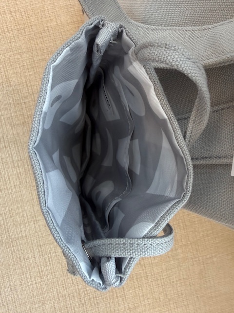 内側に ポケット1つと 横にファスナー付きポケットが1つ ついています。